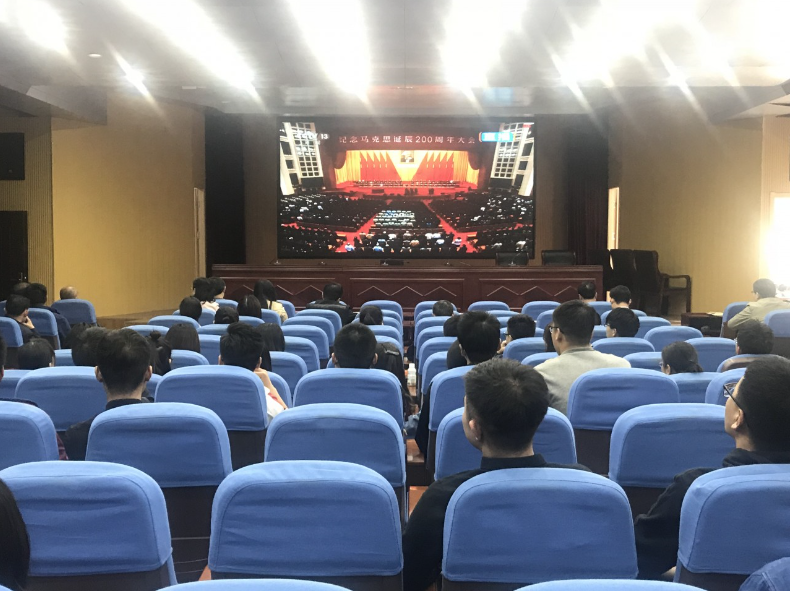 5月4日上午10:00,色情小说 在学院楼434报告厅,组织学院师生党员,入党积极分子,共185人,集中收听收看马克思诞辰200周年纪念大会实况直播