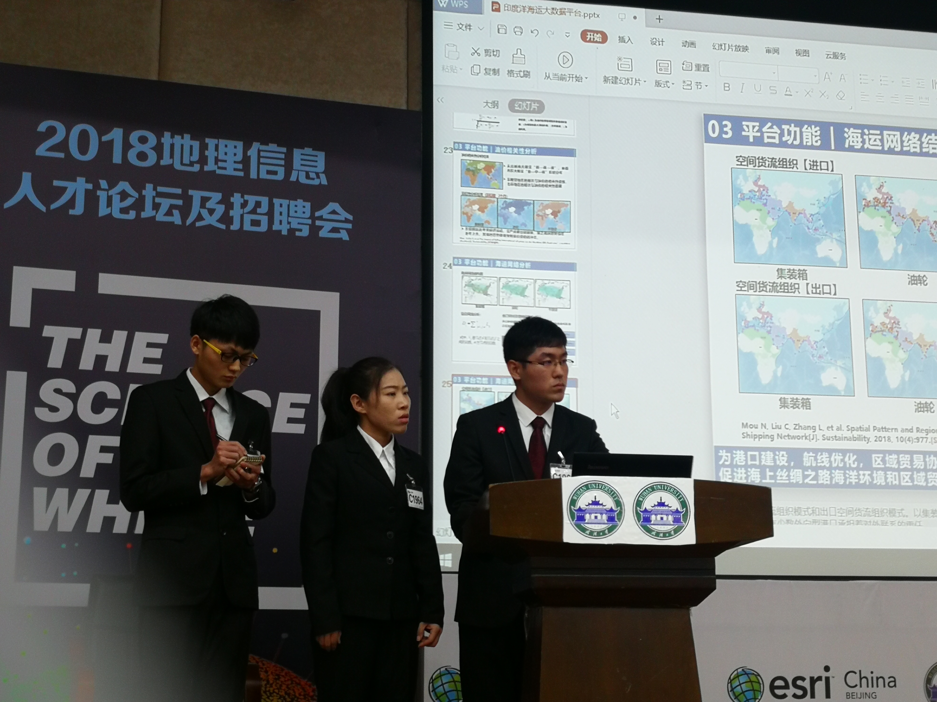 研究生谢延鑫、潘佳斌、王春迎完成的作品《海上丝绸之路—印度洋海运大数据平台》以总决赛第二名的成绩荣获一等奖。