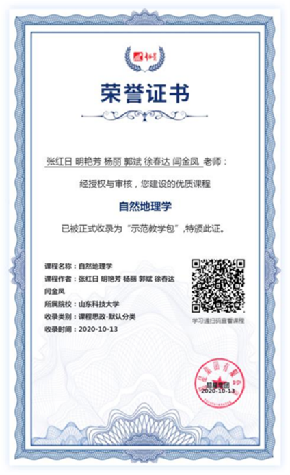 遥感、测绘、地信三个专业的专业基础课,该课程已获评2021年度山东省线上、线下混合式一流本科课程,从2020年春季学期开始,开展混合式教学已经5个周期,按照持续改进原则,课程负责人张红日教授不断进行教学改革探索,尝试了“互联网+思政”的教学模式,取得了较好效果。