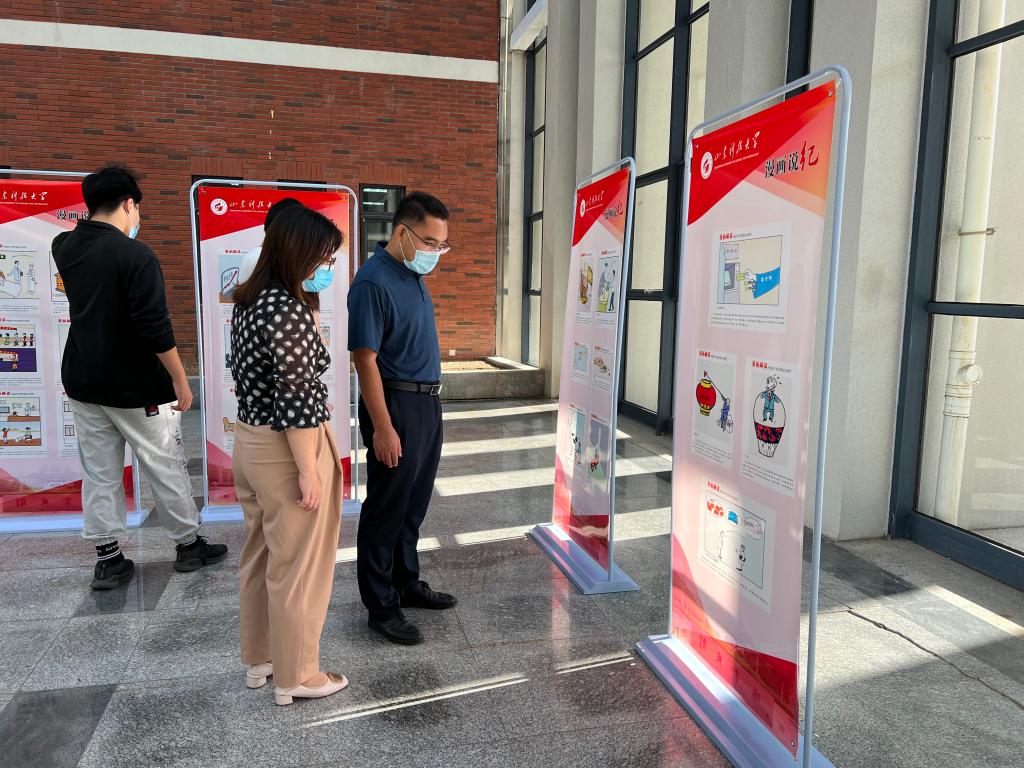 本次展览地点位于逸夫讲堂西门厅,展览共展出漫画143幅,分26个展板,以漫画的形式对《中国共产党纪律处分条例》内容逐条进行解读。学院师生在形象生动的漫画前驻足观看,交流心得,在学习放松的过程中通过一幅幅漫画图片学习党纪党规内容,体悟党风廉政建设要求。