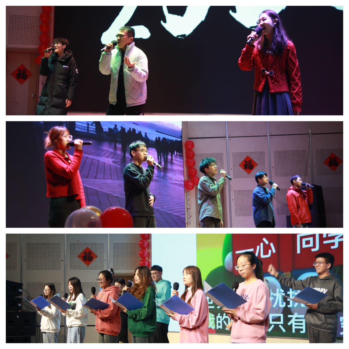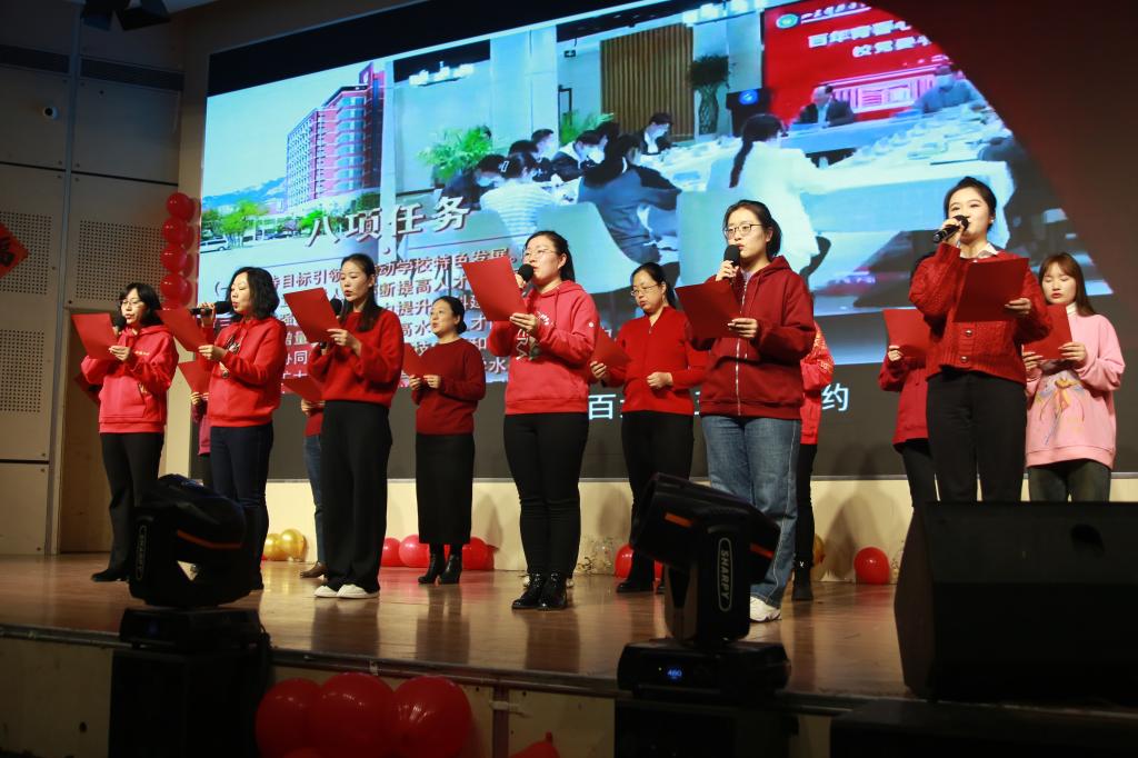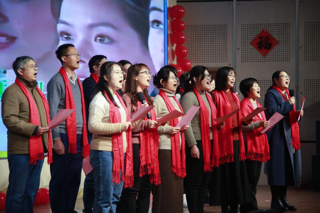师生联欢迎春晚会在大学生活动中心二楼报告厅成功举办。晚会主持人由校友、教职工和学生四人组成,全院师生与校友们欢聚一堂,共迎新春。