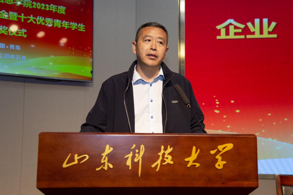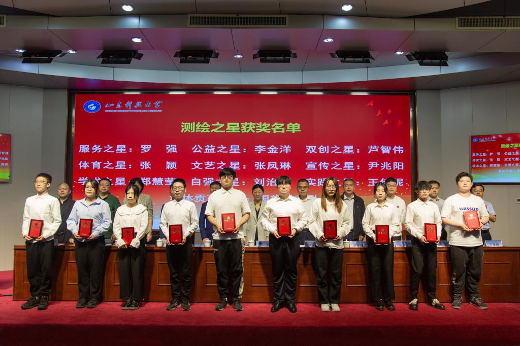 2023年企业(校友)奖学金及十大优秀青年学生、测绘之星的决定》,共137名学生获奖。获奖学生代表苏钰馨发言,她表示,作为新时代青年要常怀感恩之心,涵养青春品格;常行笃学之道,筑牢知识堡垒;常立实践之志,锤炼服务本领。随后,尹建平致辞,他激励全体同学努力钻研、追求卓越、锐意进取、勇攀高峰,为国家的科技创新和社会发展贡献自己的力量;胡守田致辞,他鼓励学生日后走上工作岗位,要牢记母校的养育之恩,为母校做贡献;王志民致辞,他通过自己的创业经历,引导学生树立目标意识,进行目标分解,他为与会学生分享自己的公司愿景,勉励在座学生:“让社会因我们而进步,让更多的人因我们而富足。”