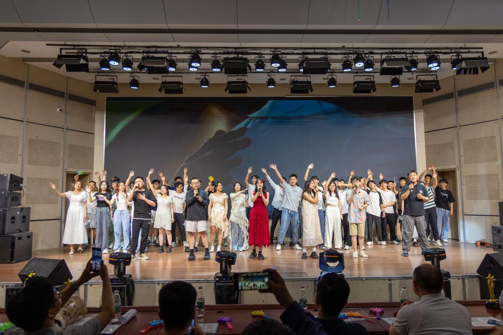 在“奋楫笃行”篇章中,艾波老师与研究生毕业生们共同唱响《启程 再见》,“向过去的悲伤说再见”“好好珍惜现在”,老师勉励学生、学生惜别老师,真挚的师生之情令人动容;朱中原同学的《00后脱口秀》诙谐幽默,于开怀大笑中引人思考;王铉霖等同学带来的舞蹈《绮梦翩跹》,展现了对美好未来的憧憬;晚会在师生合唱《那些年》中圆满落下帷幕。