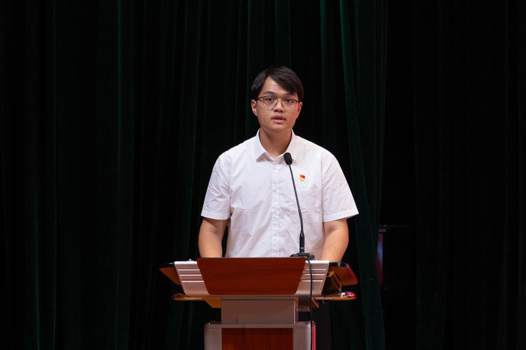 在校生代表潘泽旭、本科生新生代表代可欣、研究生新生代表张传茂分别发言,分享了自己对大学的认识、体会和期待,庄严承诺:心怀热爱,砥砺奋进,挺膺担当,为加快测绘地理信息事业转型升级,为实现国家高水平科技自立自强贡献科大测绘学子的智慧和力量。