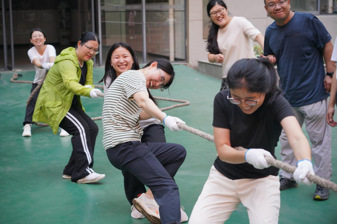 此次趣味运动会共设立了六个个人项目,包括投飞镖、保龄球、踢毽子、夹球、背靠背运气球和跳绳。这些项目不仅考验了教师们的竞技能力,还增添了许多趣味性、娱乐性和互动性。除了个人项目外,此次活动还特别设置了团体项目——拔河比赛,经过紧张激烈的角逐,教师们展示团结协作、顽强拼搏的风采。