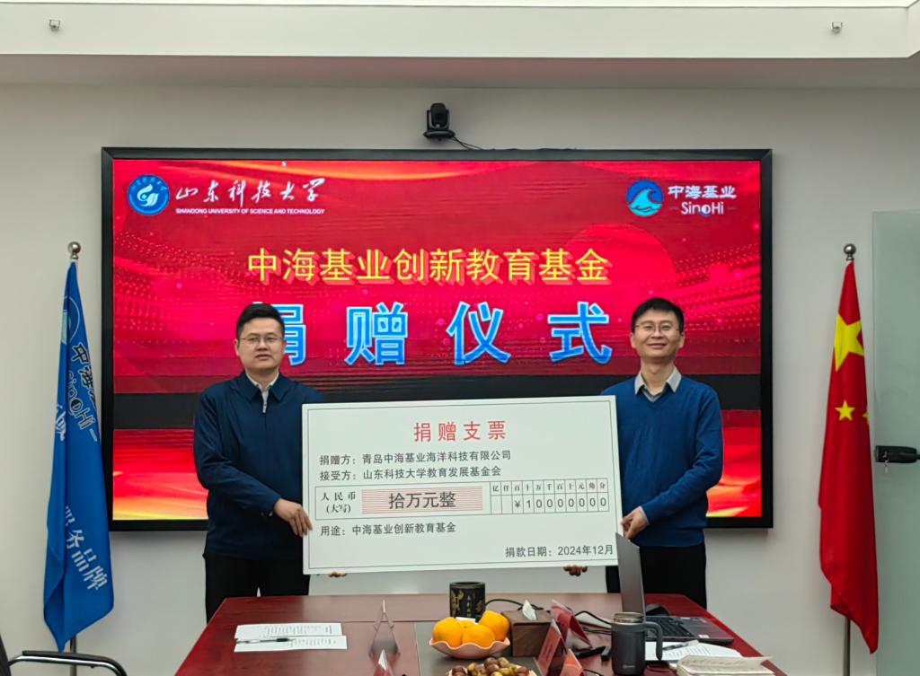 侯健代表公司捐赠10万元设立“中海基业创新教育基金”,用于奖励相应研究方向的导师创新工作室和国家级创新项目中表现突出的优秀教师、优秀学生。涂锐对公司关心教育事业表示感谢,学院将科学合理使用“中海基业创新教育基金”,培养更多测绘领域应用型创新人才。