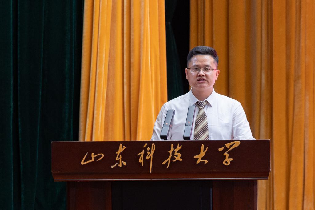 教师代表季民从树立目标、学习创新、自律自强等方面讲述了如何开启新的大学生活,深情寄语同学们:以梦想为笔,以实干为墨,在这片山海之间,共同绘制属于你们的、属于中国测绘的壮丽篇章!