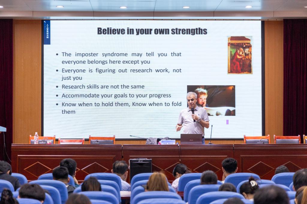 在报告中,Saeid Pirasteh教授以学生在科研工作中常遇到的困惑问题为切入点,重点介绍了地球科学和地理信息系统(GIS)视角下的研究设计、方法及技巧。报告内容包括研究设计的合理性、数据分析和空间统计技术在地球科学和GIS研究中的应用等。他详细讲解了制定科学研究提案所需的技术和策略,并结合实际论文案例,强调了定性研究和定量研究的重要性,深入探讨了开展研究的关键步骤。