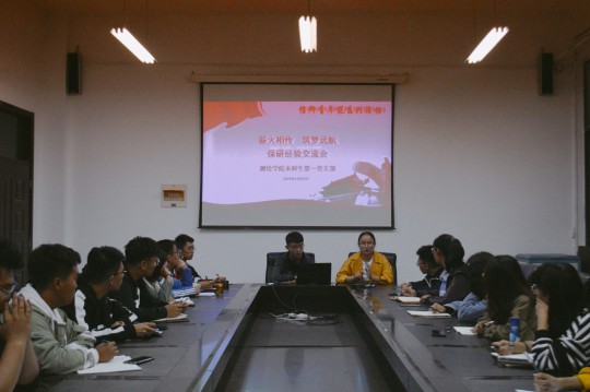 在J6—547举办学生工作分享交流会,本科生第一党支部学生党员刘昊和史昕宇做分享。19级班长支书参加本次会议。