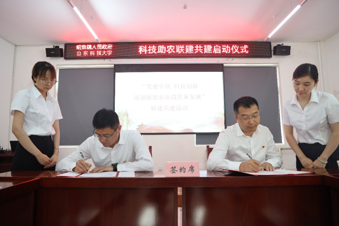 ▲遥感系主任刘健辰与明集镇党委副书记张传尧签订联建共建协议书