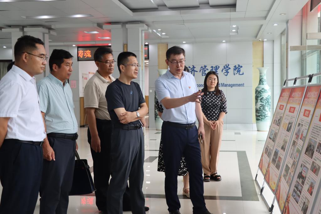 在学院“学思想”“强党性”“重实践”“建新功”主题教育成果展区,指导组详细听取了学院在以学铸魂、以学增智、以学正风、以学促干等方面的特色做法,并观看了学院主题教育专题党课视频及迎“七一”暨党员宣誓活动纪录片。
