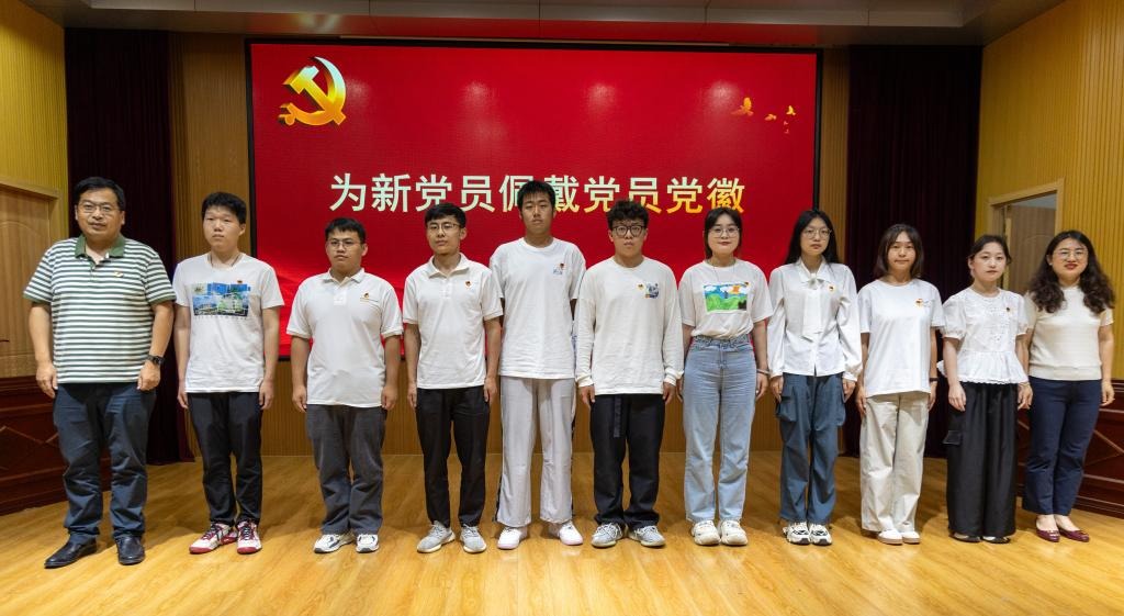 “我志愿加入中国共产党……”,在鲜艳的党旗下,地理学和电子信息专业研究生党支部书记韩冰带领新党员宣誓、全体党员重温入党誓词。铿锵有力的誓言在报告厅中回荡,燃起了广大党员践行诺言、砥砺奋进的激情与担当。