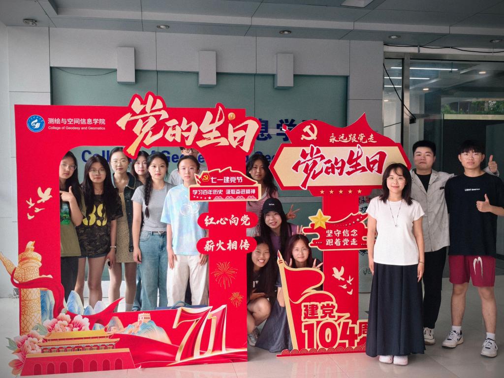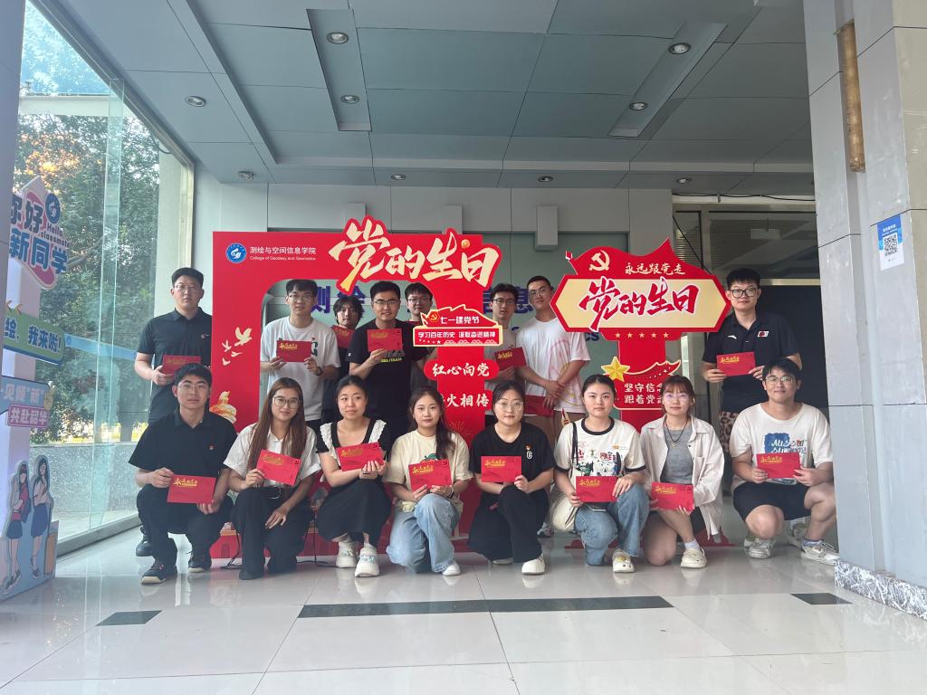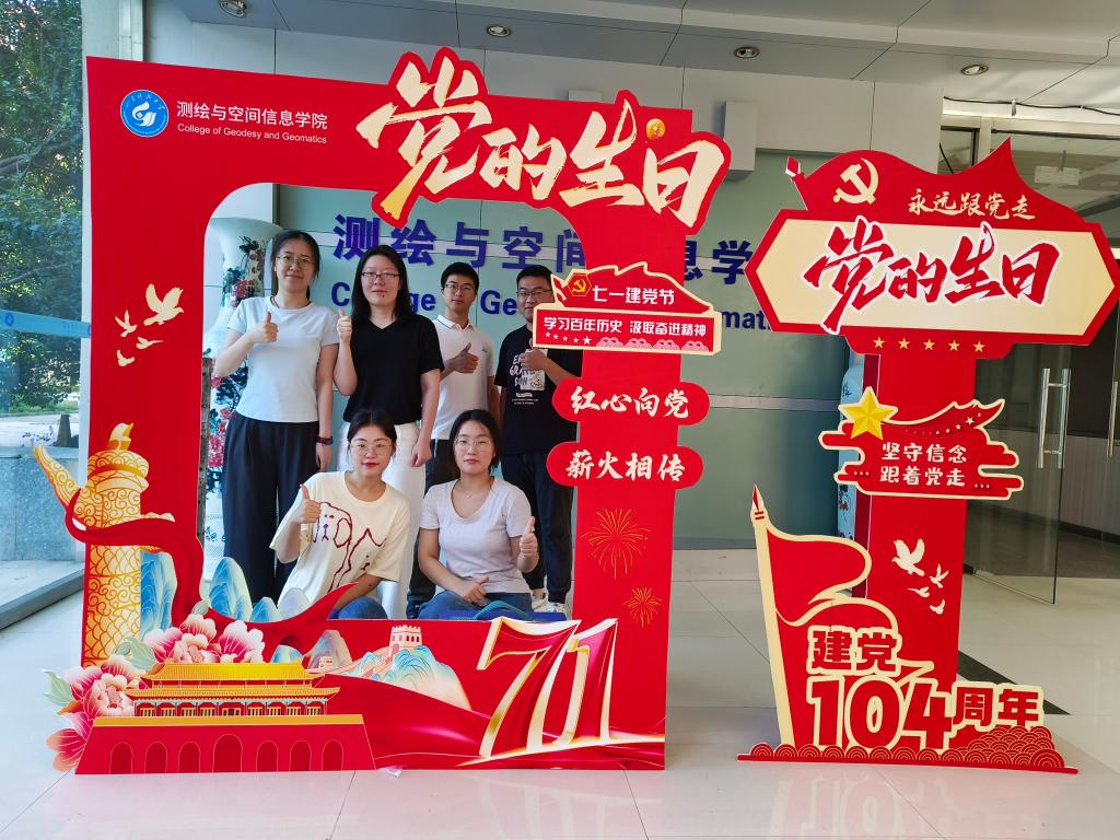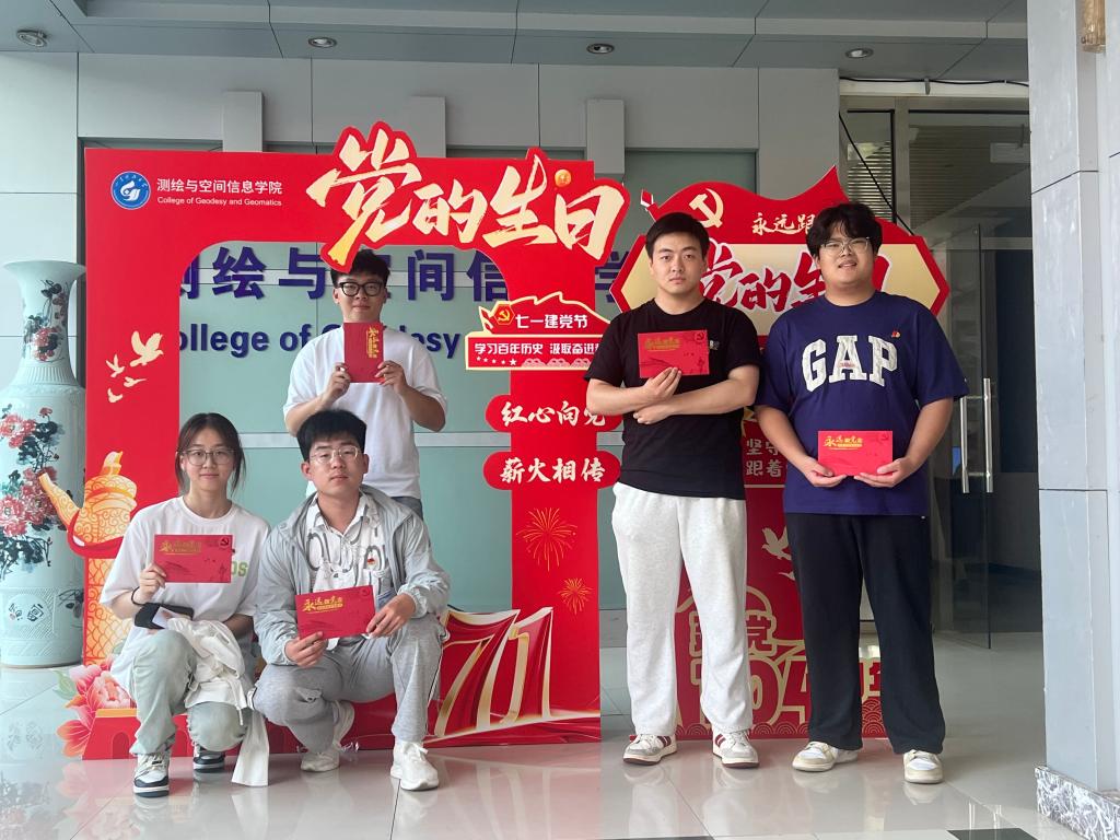 各党支部组织支部党员前往学院设置“我和党旗同框”主题打卡点,设计创意队形进行个性化拍摄,展现集体风采,用青春笑脸+党旗红,定格对党的敬意。