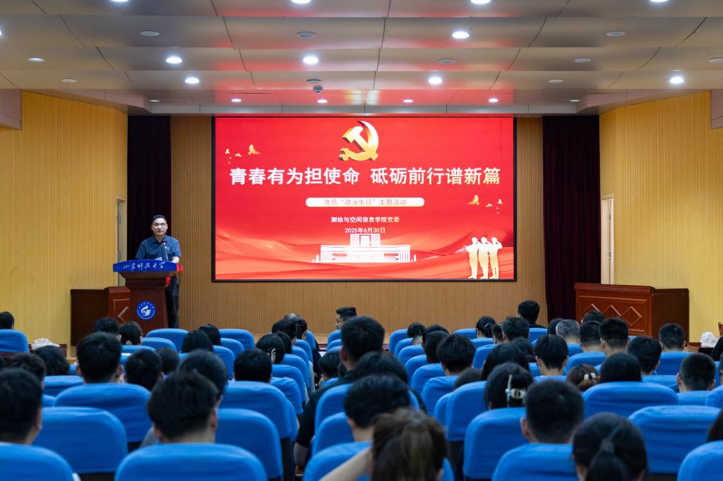 在J6-434报告厅举办“青春有为担使命·砥砺前行谱新篇‘七一’”党员“政治生日”主题活动,活动由学院党委副书记吴昊主持,学院全体师生党员参加。