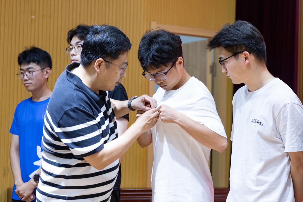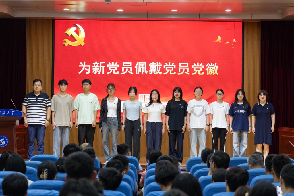 活动在庄严肃穆的氛围中拉开帷幕。学院领导班子成员将红灿灿的党徽佩戴在新党员胸前,让2025年上半年新发展的党员亮出党员身份,强化党员意识,树立党员形象。“老党员为我们佩戴上党徽的那一刻,这是以老带新、薪火相传,是鞭策,是激励,就是要求我们党员时刻牢记自己的“入党初心”、牢记自己的“第一身份”,时刻用党员的标准衡量自己”党员白若璇说。