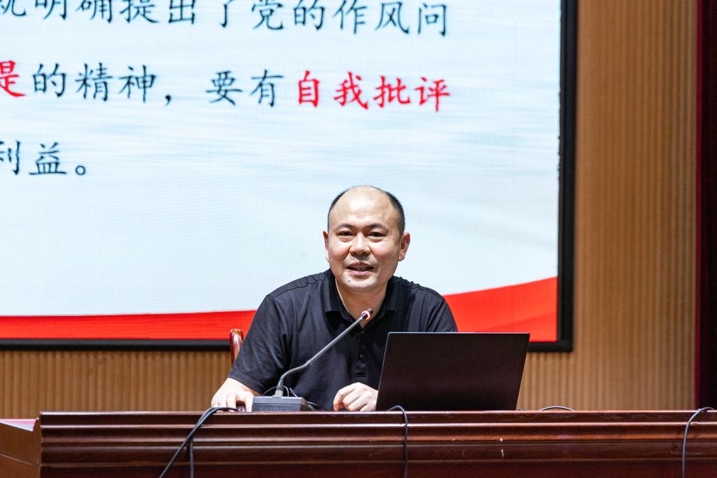 学院党委书记范俊峰通报了2025年上半年党建工作情况,并为全体党员作《深入贯彻中央八项规定精神持续推进新时代党的作风建设》专题党课。他围绕“中央八项规定精神的实质内容是什么?为什么要开展深入贯彻中央八项规定精神学习教育?怎样开展深入贯彻中央八项规定精神学习教育?”三个问题出发,从重视作风建设是党的优良传统;“八项规定”是改进作风的切入口;聚焦主题,一体推进“学查改”三个方面为落脚点,深入解读了中央八项规定精神的核心要义。他强调,全体师生党员要深学细悟习近平总书记关于加强党的作风建设的重要论述,切实增强思想认识、明确努力方向,不断把作风建设引向深入,锲而不舍落实中央八项规定及其实施细则精神,躬身实干做好新时代党的群众工作,把学习教育成果转化为回应师生诉求、锐意改革创新、服务师生发展的强大动力,以过硬作风推动学院各项事业高质量发展。