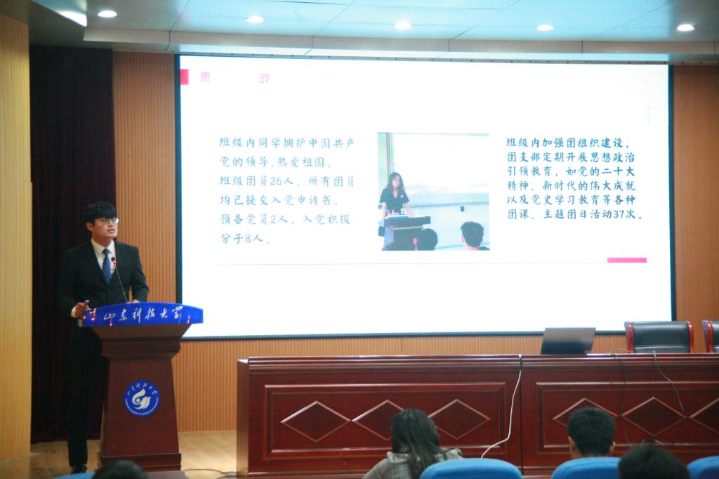 经班级申请、学院审核,共有7个班级进入答辩环节。答辩伊始,主持人介绍了答辩流程及注意事项。随后,各位班级代表依次上台进行答辩,他们从班级建设、学风建设、党团建设、科技创新、文化活动、社会实践、志愿服务等方面展示了本班级上一学年取得的成绩。答辩结束后,各位评委老师根据各班级的汇报情况,综合班级日常表现等,初步评选出2022-2023学年先进班集体。