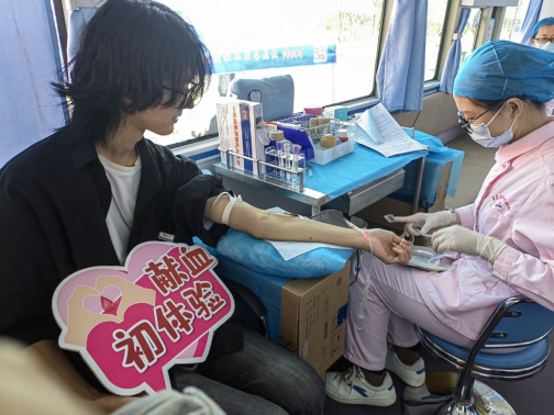 本次活动按照报名表填写、血压测量、采血检查、采血、献血登记的流程有序开展。青年志愿者协会的志愿者们轮班为献血的同学们提供服务和帮助,在等待和休息之余,工作人员耐心告知献血的同学们相关注意事项,减少献血后出现不适症状的可能,并发放献血证及精美礼品。现场秩序井然,乐于奉献的学生们、服务周到的志愿者们、认真负责的白衣天使,构成了一幅温暖的画面。“作为一名大学生,要力所能及地为社会奉献,为公益事业贡献一份力量。”遥感21-1班任研硕如是说。