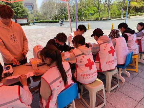 青年志愿者协会联合红十字会,在C餐门口举办本次无偿献血活动。
