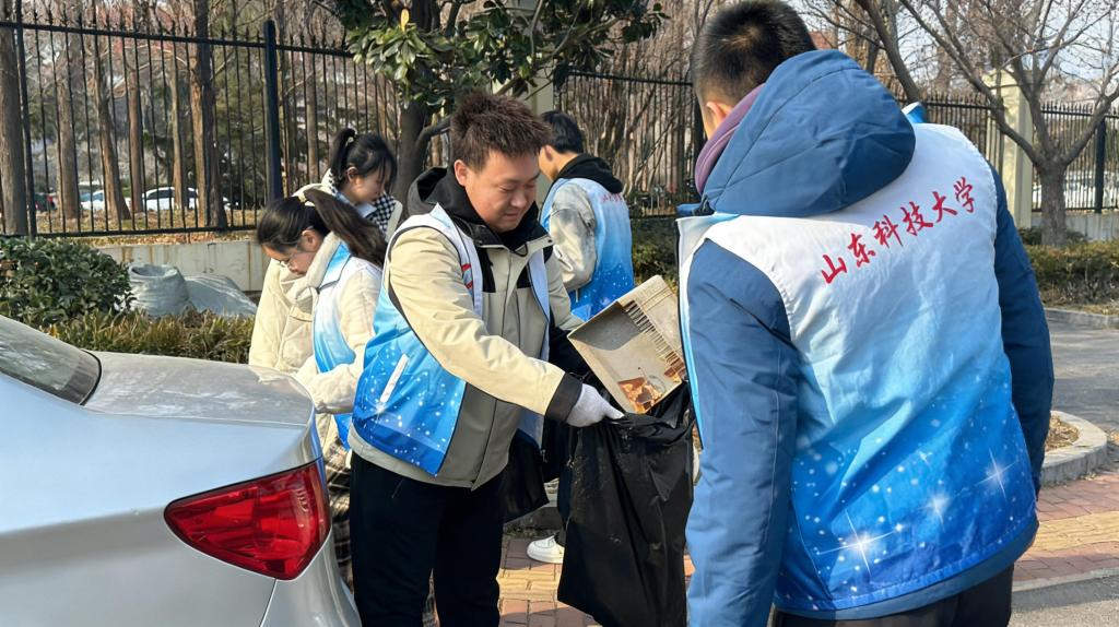 活动现场,志愿者们准时集结完毕,统一着装、领取清洁工具,在工作人员的统筹安排下明确分工、迅速行动。大家手持扫帚、垃圾夹、垃圾袋等工具,以饱满的热情奔赴各自责任区域,开启清扫工作。志愿者们分工协作、默契配合,重点对人行道、绿化带、公交站点、宣传栏等区域开展精细化清理,细致捡拾纸屑、塑料袋、烟头等散落垃圾,认真擦拭公共设施上的顽固污渍,对隐蔽的卫生死角进行彻底清理,不留一丝死角、不落一处垃圾。清扫过程中,志愿者们充分发扬不怕脏、不怕累、不怕苦的优良作风,躬身劳作、齐心协力攻克清理难点,用双手清理杂物、擦亮公共设施。经过一番认真清扫,校园南门街道焕然一新,路面干净整洁、绿化带清爽有序、公共设施洁净如新。志愿者们忙碌的身影穿梭在春日街头,成为一道靓丽的文明风景线,赢得过往师生与行人的纷纷点赞。