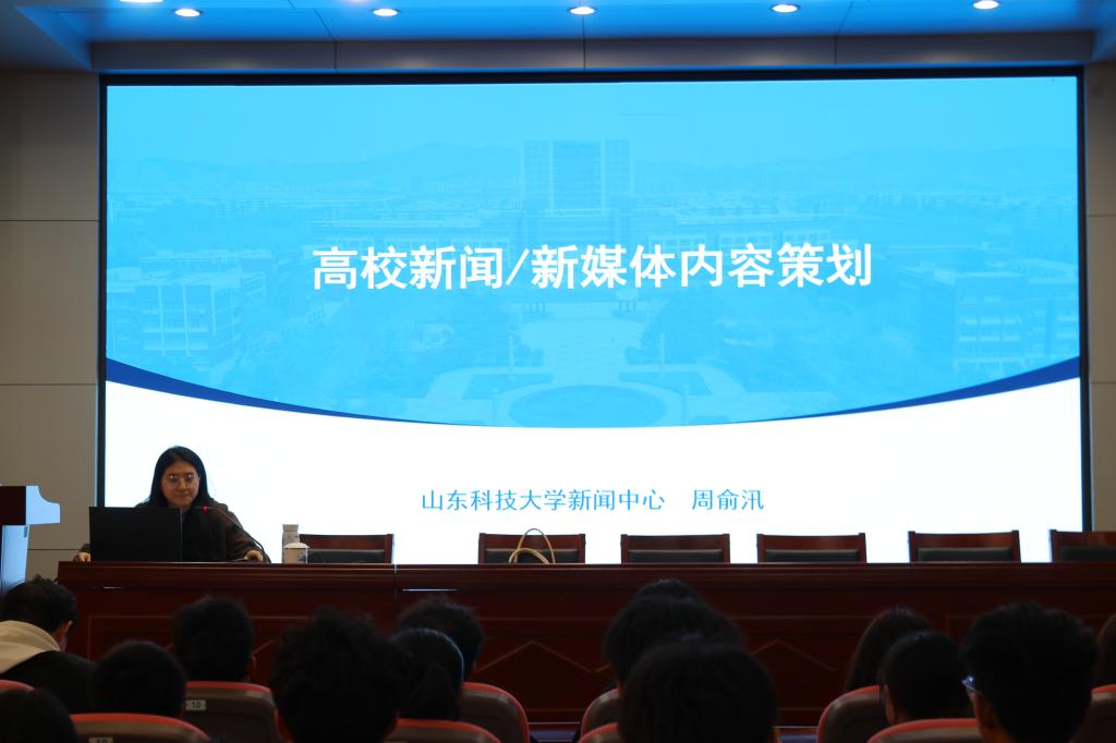 在J6-433报告厅举办新闻宣传能力提升专题培训,此次邀请了学校大学生融媒体中心指导教师周俞汛作专题讲座,学院新闻工作室全体成员、学生会各部门负责人及2023级本科生班级宣传委员参加。