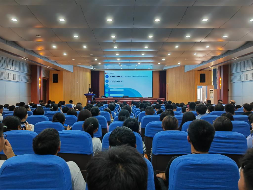 9月10日下午,学院邀请学校“第二课堂成绩单”负责人,面向全体本科生开展“第二课堂成绩单”专题报告,对“第二课堂成绩单”制度的课程设置、学时要求以及团队管理等方面做了简要介绍,为新生讲解了手机端与网页版的账号登陆、活动发起、签到签退设置等操作步骤;团委辅导员葛佳裕为新生进行了团员发展讲解,他从团支部的构成与建设、团员的教育与管理出发,引领新生了解团支部的概念,养成班团意识。