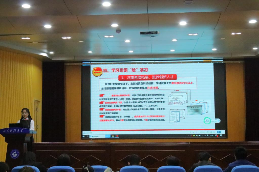 此次答辩共有10个团支部参加,各参选团支部从制度建设、思想建设、科技创新、志愿服务等方面进行了汇报展示。展示后,吴昊对各团支部汇报进行了点评,肯定成绩的同时也提出了存在的不足。最后,经过学院评审组综合考察后,确定了“2022年度五四红旗团支部”名单。