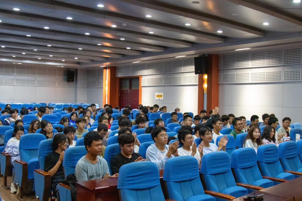 的历史沿革、专业设置、学科发展、师资队伍等情况。他以“面向朝阳:测绘工程专业的前世今生”为题,生动地讲解了传统测绘向数字测绘、信息测绘、智能测绘的演变历程,学生们反响强烈,展现出浓厚的学习兴趣。