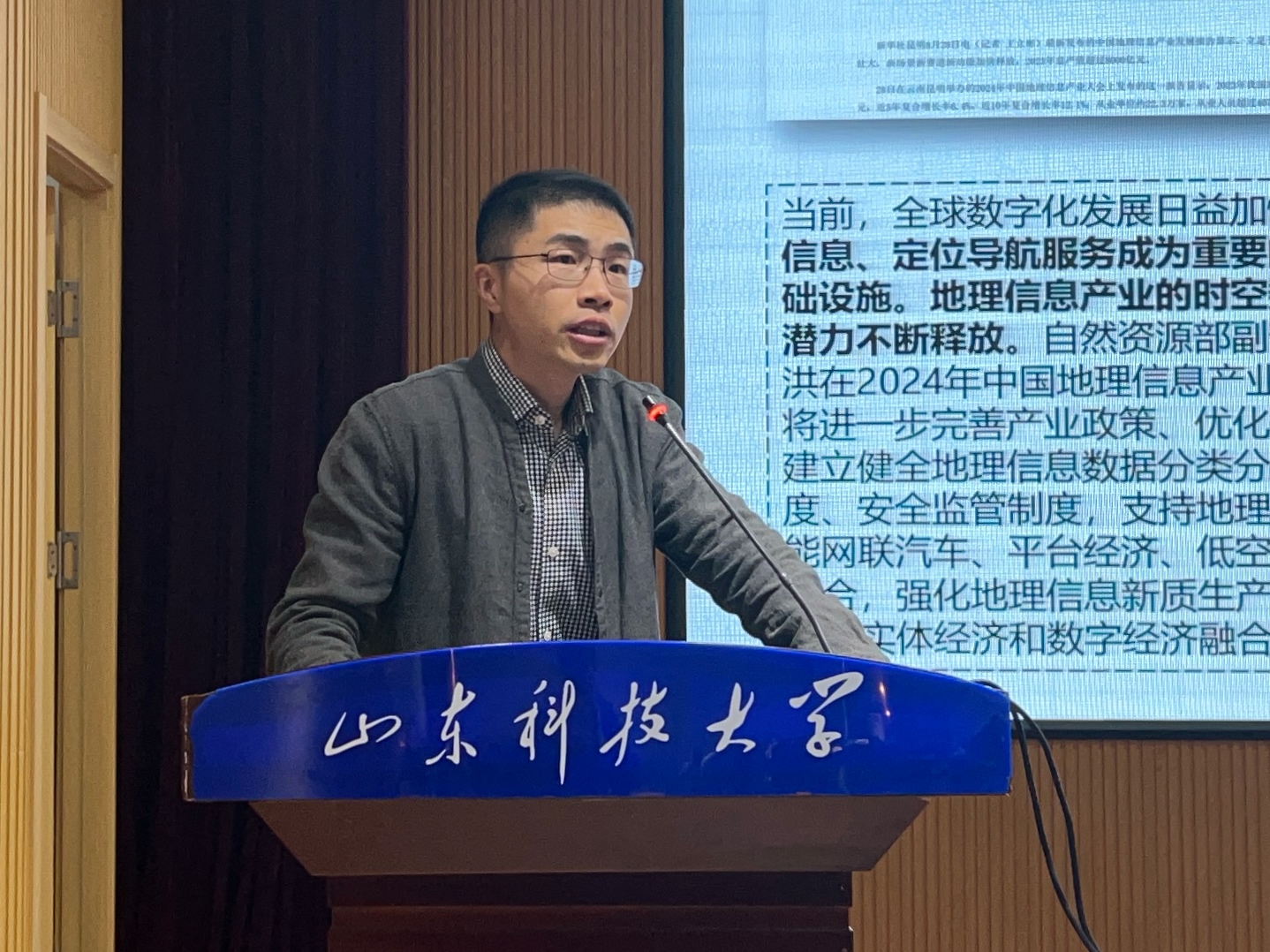 副院长王瑞富、遥感系主任黄珏、测绘系教师张鹏飞、地信系教师信睿分别进行分享与指导,2022级本科生近300人参加。大会由学院党委副党委书记兼副院长吴昊主持。