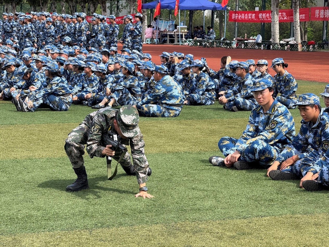 在95式操作训练环节,教官们详细地指导握枪姿势,反复强调练习技巧。两小时训练中,烈日下的汗水浸透了迷彩军训服,却没有一名同学松懈,学生们始终保持专注,在实操中感受枪械操作严谨性与规范性。