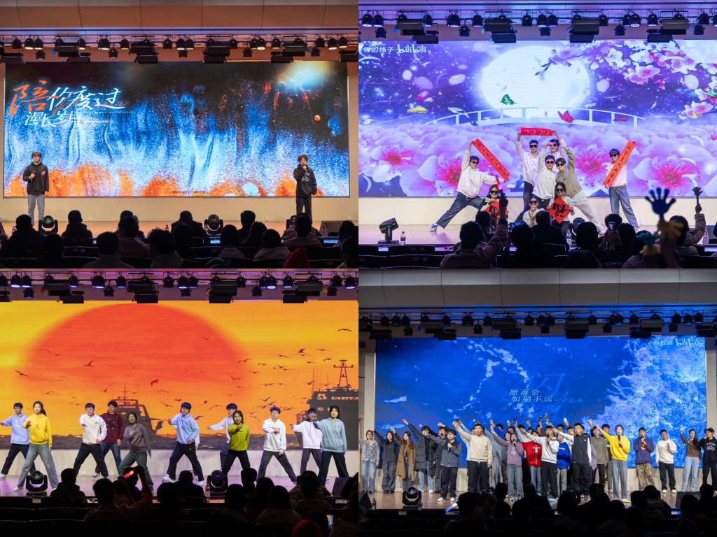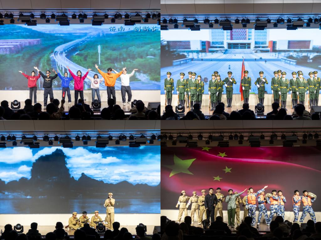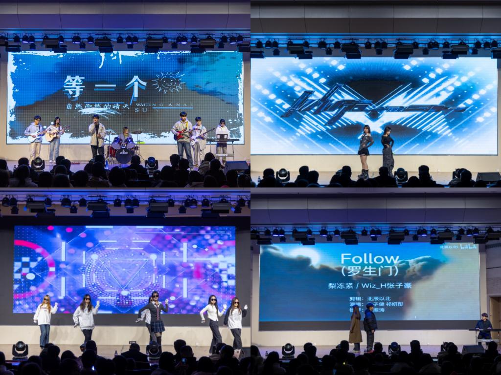 第三篇章“喜迎华诞”庄重而热烈,遥感二班的《相亲相爱》、曲艺队的《传承使命,接续奋斗》以及国旗护卫队的《逐空》,无一不以真挚的情感与精彩的演绎表达了对祖国华诞的深情祝福与美好祈愿。第四篇章“共赴锦程”温情收官,大艺团声乐队的《歌曲串烧》、地信三班的《桃花朵朵》与学生会权益部的《日不落》、遥感三班的《闪耀》,共同传递出对未来携手共进的美好憧憬与坚定信念。