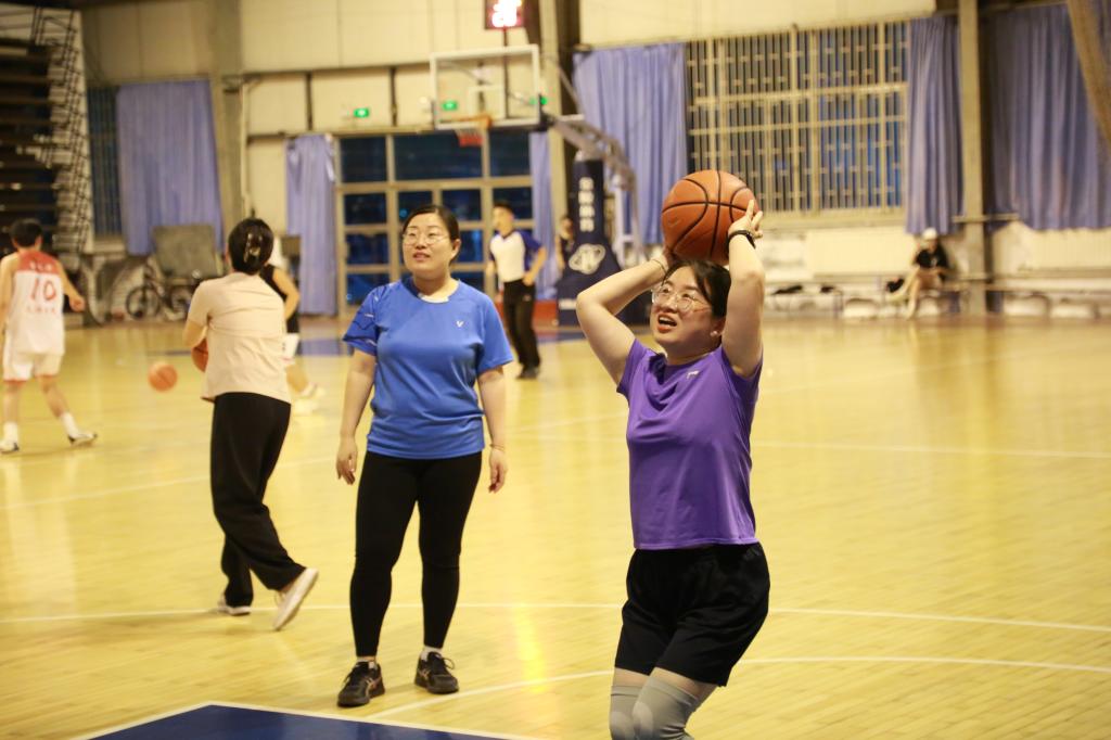 师生的风采和实力。比赛开始后,双方队伍迅速进入状态,展开了激烈角逐,比分交替上升,难分伯仲。比赛过程中,教师队凭借丰富的经验和精湛的技术处于优势,而学生队则展现出灵活的战术配合,将比分紧紧咬住,最终教师队以85:83的比分胜出。活动过程中,设置女子投篮小游戏,教师与学生队伍各派出队员代表进行投篮比赛,现场气氛活跃。