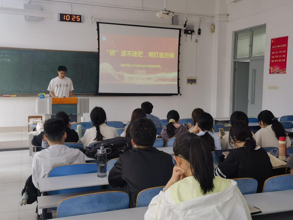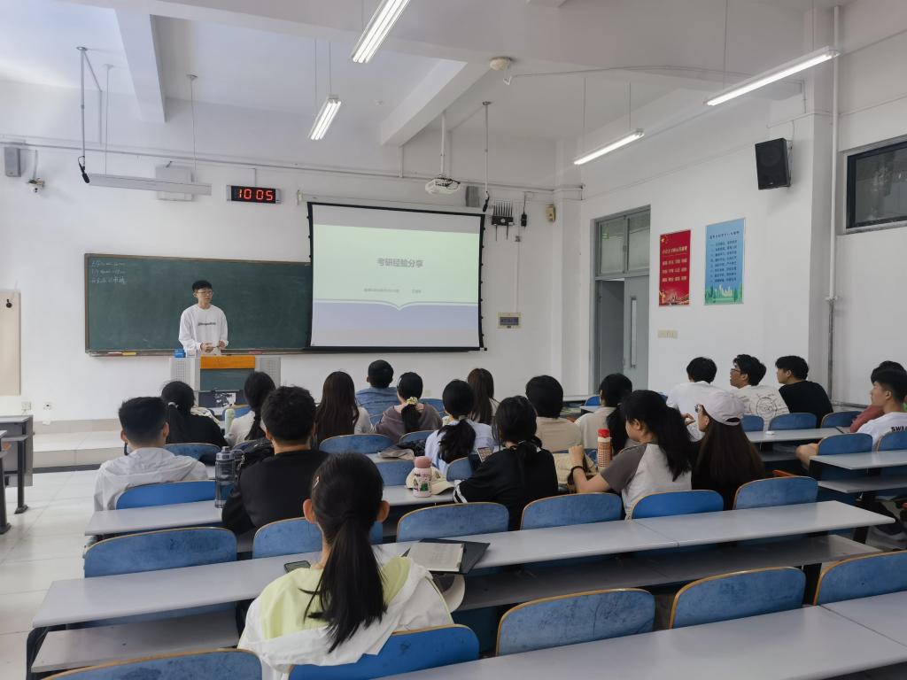 以班级为单位举行考研交流分享会,共邀请到25位考研上岸和境外升学的优秀学子分享他们的考研经验及心得。