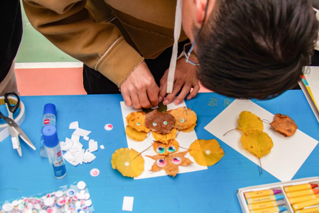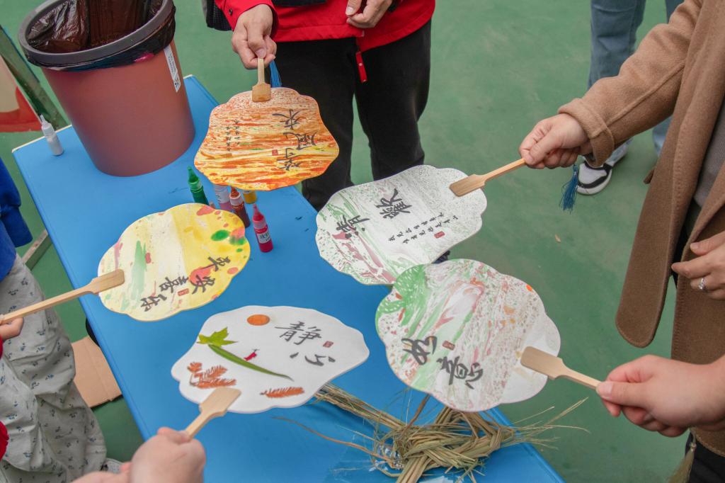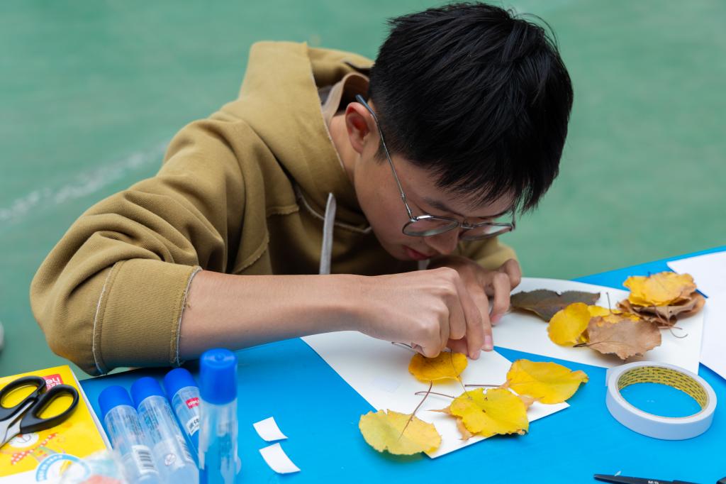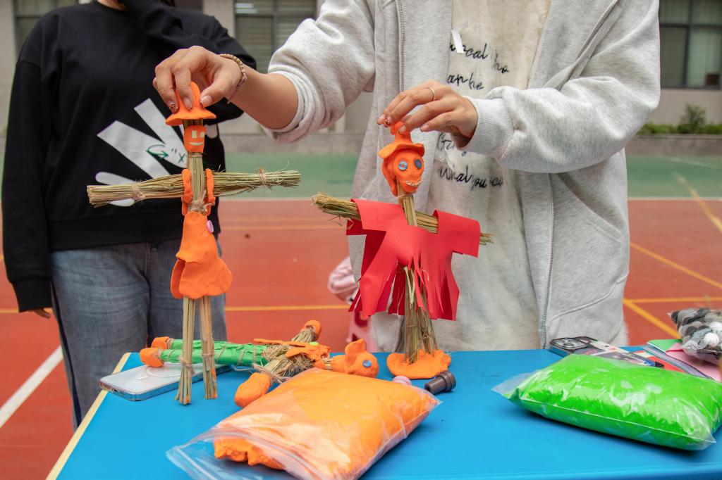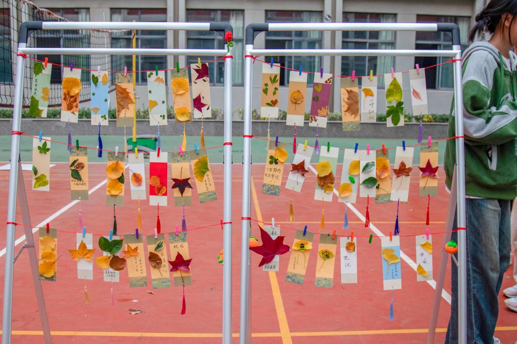 活动形式丰富,包括五个环节。在“秋韵雅集·漆扇绘秋”环节,参与者们以漆扇为载体,用细腻的笔触和丰富的色彩描绘出秋天的韵味。在“秋韵拾趣·树叶书签手作”环节,大家将捡拾的落叶进行精心处理,通过巧妙的构思,将落叶制作成独一无二的精美书签。在“金秋拾叶·落叶绘秋”中,同学们以落叶为纸,以创意为笔,撰写了一篇篇关于秋天的日记;每一片落叶都被赋予了新的生命和意义,成为记忆秋天的独特符号。在“秋韵丰收·柿柿如意庆典”环节,参与者用黏土创作,共同许下了“柿柿如意”的美好愿望,寓意着未来的生活将如秋天的柿子一般,甜美而圆满。在“秋韵野趣·漫漫时光稻草人”环节,参与者们走进了一个由稻草人构成的奇妙世界,共同感受秋天的美好与宁静。