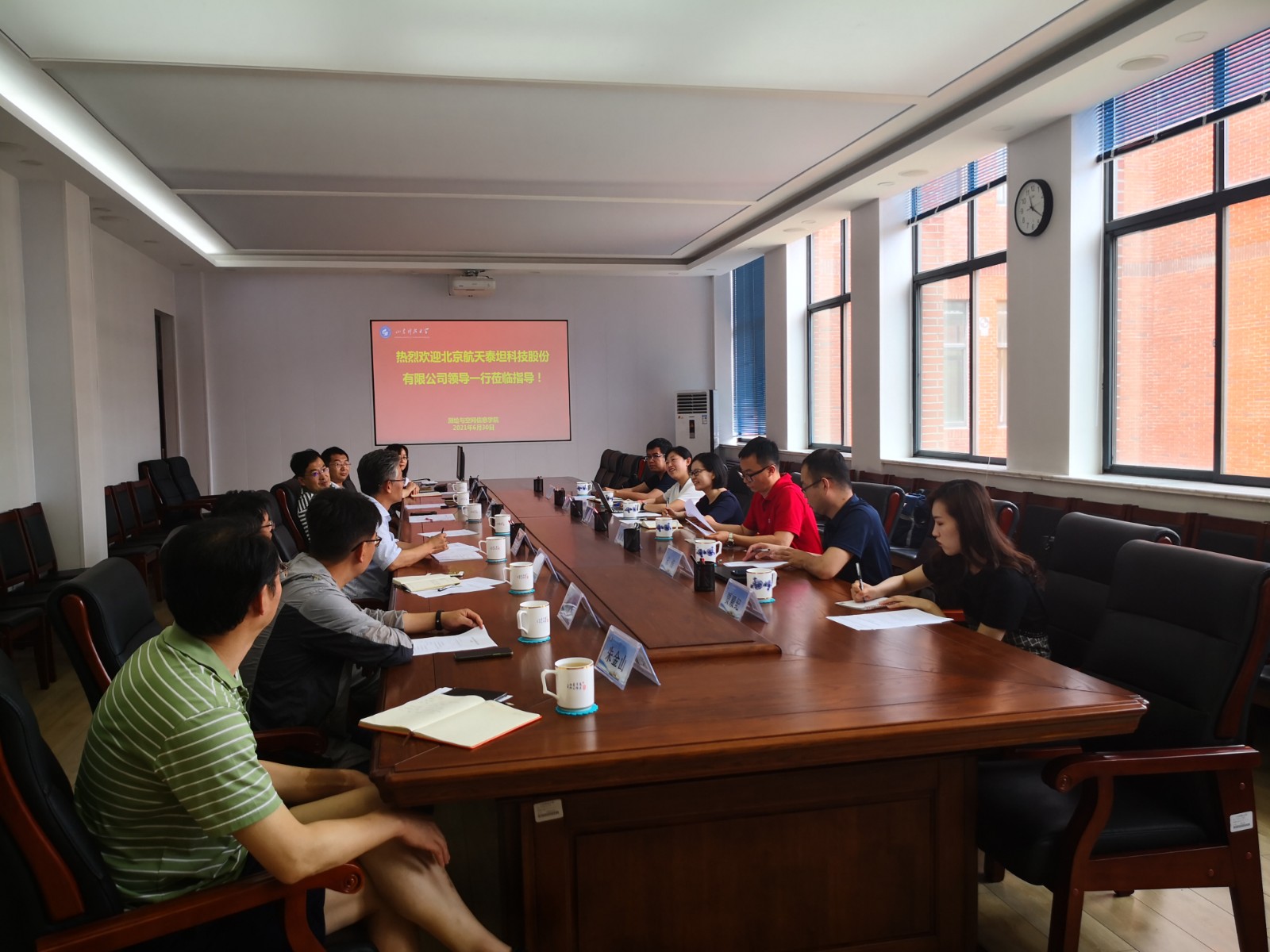 2021年6月30日,北京航天泰坦科技股份有限公司副总经理李莹、事业部总经理许青云、研发总监韩冰、遥感业务总监董鹏龙、副总经理宋传、工程师贾殿纪一行来色情小说 调研交流。色情小说 党委书记秦昌盛、副院长王瑞富以及测绘...