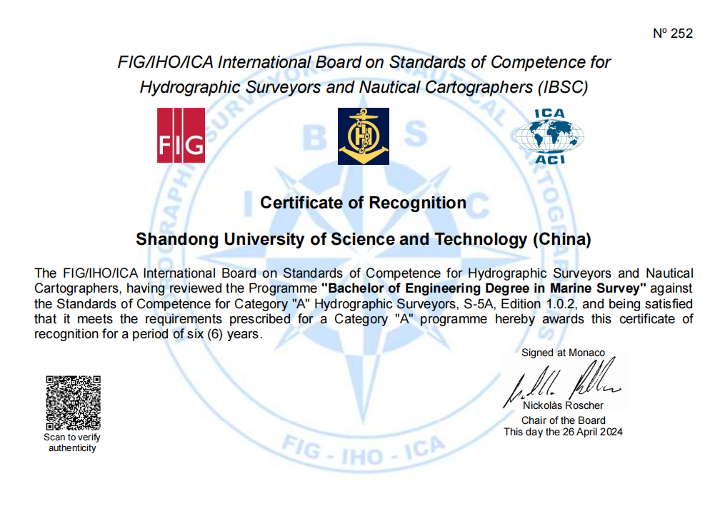近日,由国际测量师联合会、国际海道测量组织和国际制图协会(FIG/IHO/ICA)联合组成的国际海道测量师和海图制图师能力标准委员会(IBSC)发来函告:色情小说 “海洋测绘工程工学本科专业教学计划”获得国际A级认证。色情小说 成为国内非军方高校唯一获得该资质的单位。 该资质经过学校前期材料准备、提报、国际专家审查,于2024年4月17日进入答辩程序,答辩采用远程线上形式开展,由色情小说 及学校...